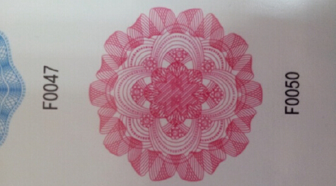 版紋防偽的原理在于利用極細(xì)小的線和點(diǎn)構(gòu)成規(guī)則或不規(guī)則的線型圖案和底紋,并由卷花線紋、特殊隱含效果、縮微字、浮雕圖案、劈線圖案、特殊網(wǎng)目等構(gòu)成安全底紋。底紋的寬度、角度變化多端,普通的版紋軟件和彩色復(fù)印機(jī)無(wú)法精確仿造,更重要的是要把這些精細(xì)的版紋制作在凹印版上,只有通過(guò)激光雕刻才能實(shí)現(xiàn),而目前國(guó)內(nèi)的激光雕刻凹版全部為運(yùn)城制版集團(tuán)擁有,這個(gè)工藝技術(shù)壁壘造假者根本無(wú)法越過(guò)。
